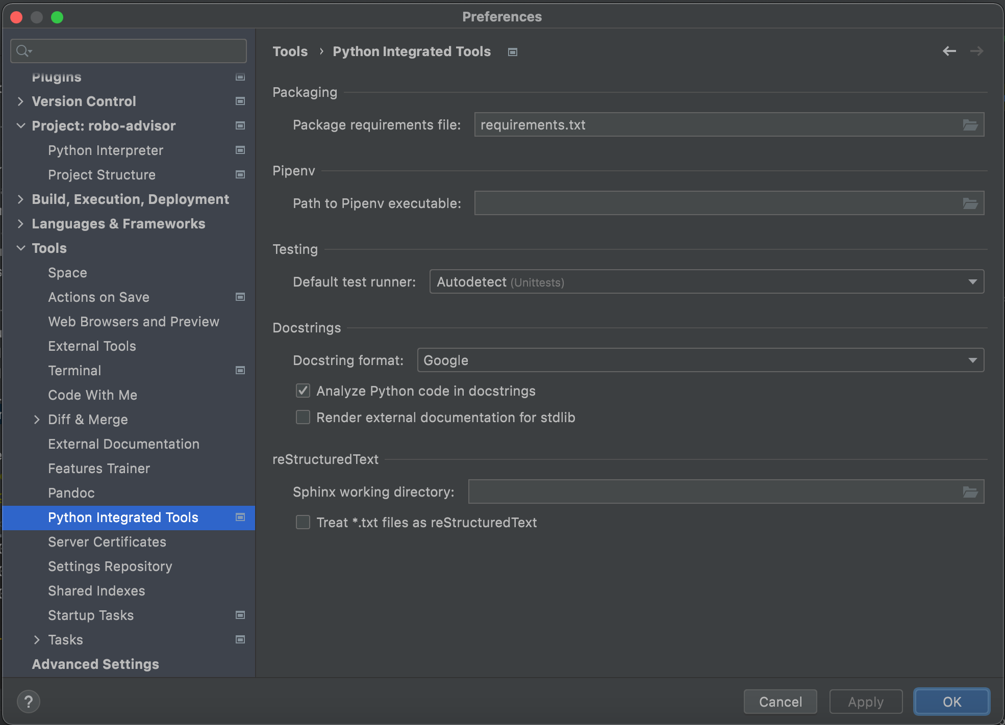 Tools > Python Integrated Tools > Docstrings > Docstring format