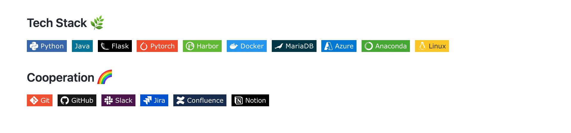 위 코드에서 Git-F05032 부분과 logo= 뒤에오는 Git 파트를 바꾸면 내가 원하는 뱃지를 생성할 수 있다..!